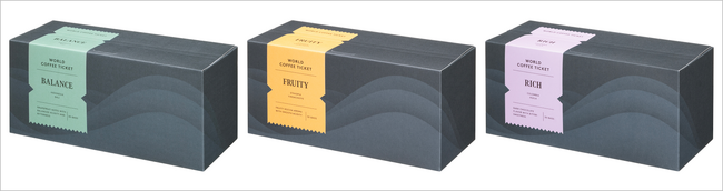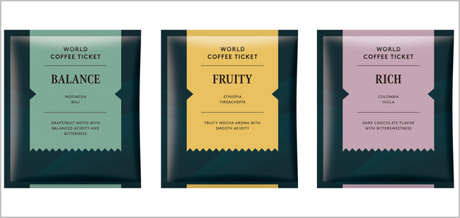「世界のコーヒーチケット」というシリーズ名は、コーヒーを飲むことで“世界を旅するような気分を味わって欲しい”という開発担当者の思いのもと誕生しました。旅のチケットをイメージしたパッケージは、黒を基調としたシンプルなデザインとなっており、カフェコーナーへの設置やプレゼント・ノベルティとしても活躍しそうです。