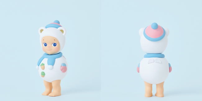 これはソニーエンジェルの冬物語。手袋やマフラーなど冬の装いに身をつつみ、寒い中、鼻を赤くしながら元気っぱいに雪遊びを楽しむソニーエンジェルの健気であどけない姿は、見る人の心を癒してくれます。
