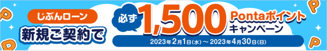 auじぶん銀行株式会社(本社:東京都中央区、代表取締役社長: 石月 貴史、以下 auじぶん銀行)は、2023年2月1日から「じぶんローン 新規ご契約で必ず1,500Pontaポイントキャンペーン」(以下 本キャンペーン)を実施します。