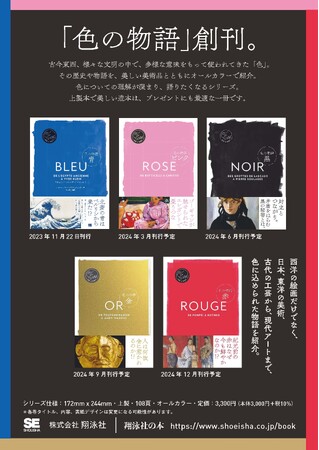 その色はどこから来て、どこへ向かうのか。古今東西文明のなかで、さまざまな意図で使われてきた「色」の歴史とストーリー、影響力を、名だたるアート作品の美しいビジュアルでたどります。地図や図解、年表等のグラフィックも豊富に盛り込み、多彩な角度からの解説が特徴です。続編として「ピンク」「黒」「赤」「ゴールド」の刊行を予定しています。