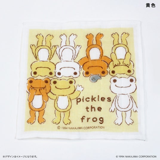 蚊帳生地ふきん(黄色) かえるのピクルス