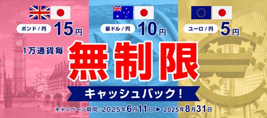~8月末までの期間限定!ポンド/円・豪ドル/円・ユーロ/円の取引量に応じて無制限キャッシュバック!~