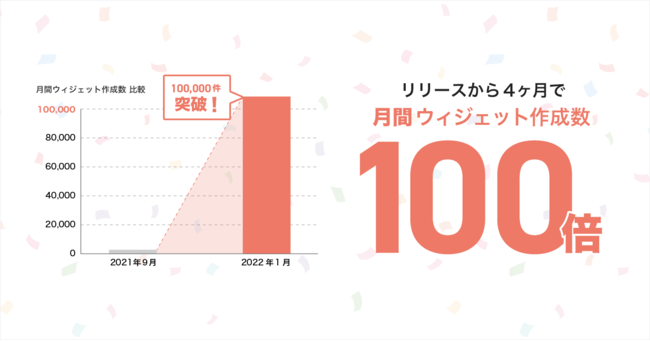 アプリをリリースした2021年9月の月間ウィジェット作成数は約1,000件だったので、リリース時と比較して4ヶ月で約100倍の件数となりました。