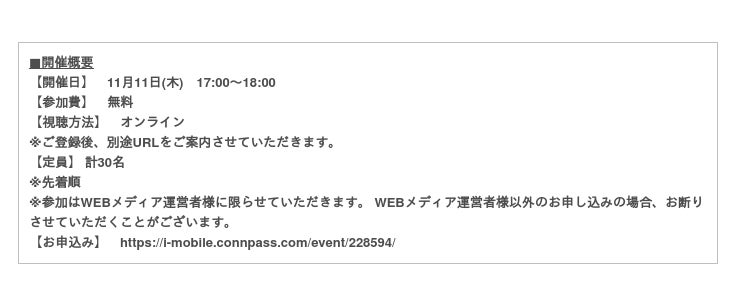 お申し込みはこちらから https://i-mobile.connpass.com/event/228594/