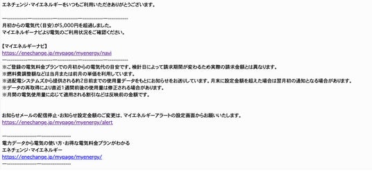 ※ご登録の電気料金プランでの月初からの電気代の目安が設定金額を超えたときに通知メールをお送りします。検針日によって請求期間が変わるため実際の請求金額と通知の金額は異なります。