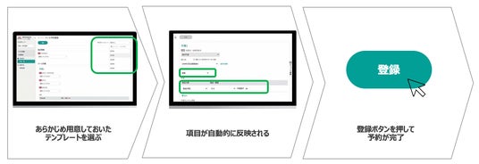 「このテンプレートを使って予約登録しておいて」といった形で、ほかのメンバーへ業務の共有もできるため、特定の担当者への作業集中を防ぎ、組織として予約管理を進めやすくなります。