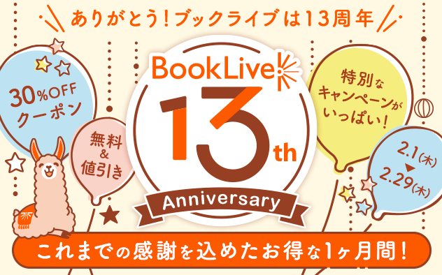 2月の13周年キャンペーン期間中はお得な企画を全部で13個ご用意!この期間だけのキャンペーンとなりますので、ぜひチェックしてブックライブをよりお楽しみください!!