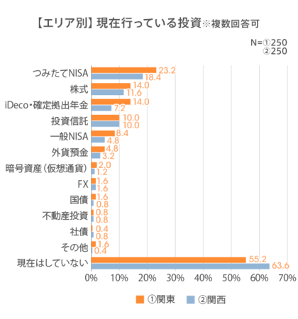 ・現在投資をしている人は約4割で、関東では44.8%と関西より8.4%多い!