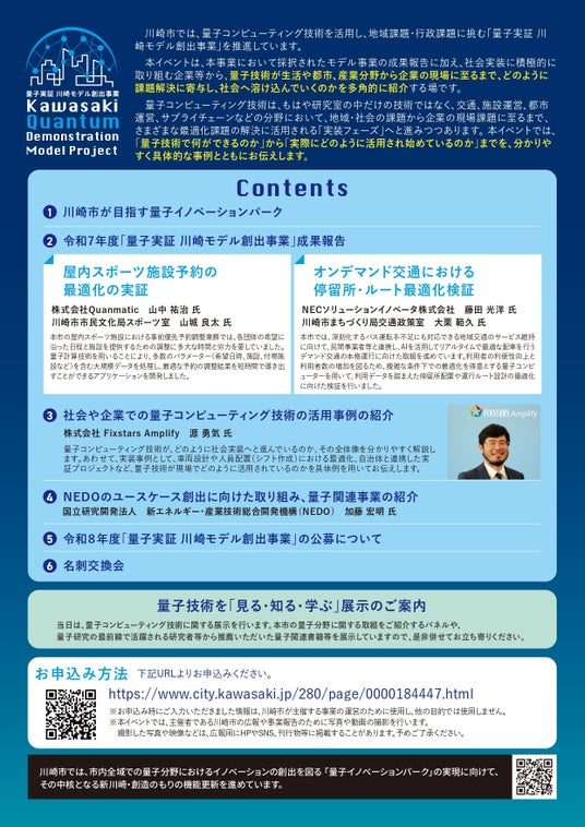 チラシ(「量子実証 川崎モデル創出事業」成果報告会)(PDF, 1.18MB)