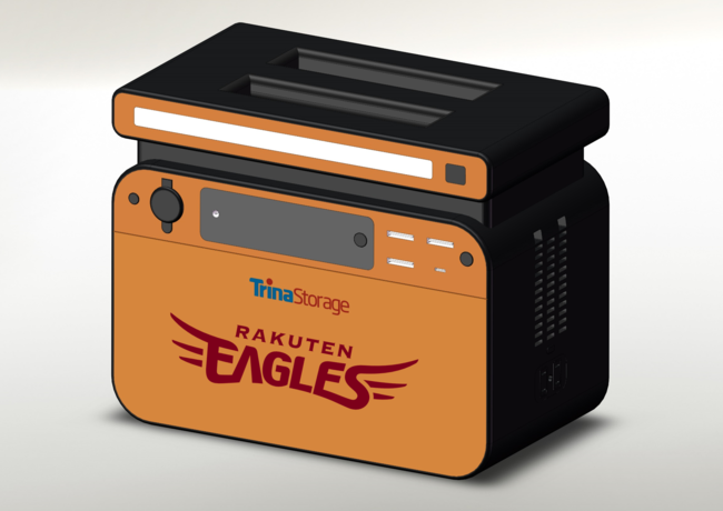 本取り組みは、パートナー企業のトリナ・ソーラー社と連携し、有事の際に必要となる電力供給できる同社の蓄電池「TS005A(電池容量:518Wh)」を、被災地の施設へ寄贈するものです。当日は、楽天生命パーク宮城にて「TS005A(電池容量:518Wh)」の展示および「携帯充電サービス」も実施される予定です。
