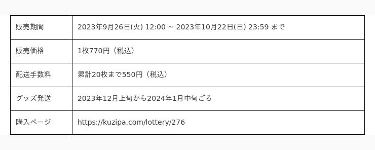 ※当選された商品は、通常のくじの当選商品と同梱し、お届けいたします。