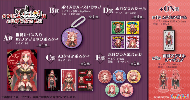 株式会社HIKE(本社:東京都新宿区、代表取締役:三上 政高)は、運営するハズレなしのオンラインくじサービス「KuZiPA!」にて、長生き元気な限界オタ系吸血鬼VTuberでお馴染み「ルル=ルチカ」のオンラインくじ『女幹部ルル=ルチカ様とお呼びなさい!!』を9月26日(火)12時より販売致します。迫力サイズの「複製サイン入りB2ファブリックポスター」や本人録り下ろし「ボイスラバーストラップ」など、全5種類のオリジナルグッズが登場致します。