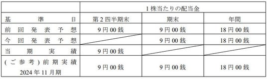 引き続きグループ中長期ビジョン(Astena 2030 “Diversify for Tomorrow.”)の目標達成に向けて各種施策に取り組んでいくことを勘案し、2025年11月期の中間配当は、当初予想通り1株当たり普通配当9円00銭とさせていただきます。なお 2025年11月期の期末配当についても、1株当たり9円00銭での実施を予定しております。