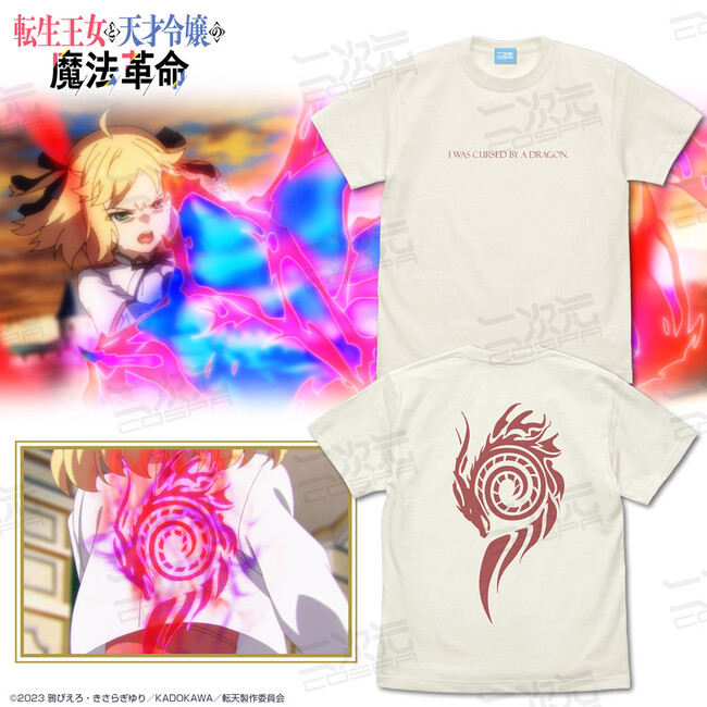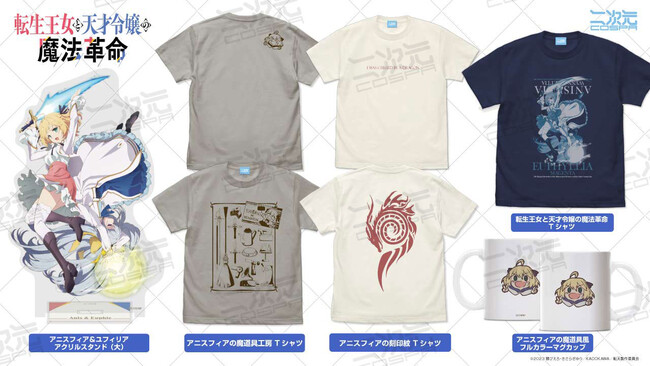アニスフィアの刻印紋Tシャツなど、『転生王女と天才令嬢の魔法革命』より、Tシャツやアクリルスタンドが二次元コスパから登場いたしました。