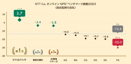 NTTコム オンライン・マーケティング・ソリューション株式会社(本社:東京都品川区、代表取締役社長:塚本 良江、以下NTTコム オンライン)は、NPSベンチマーク調査2023 総合型旅行会社部門を実施しました。この結果、最もNPSが高いのは、ジャルパックとなりました。