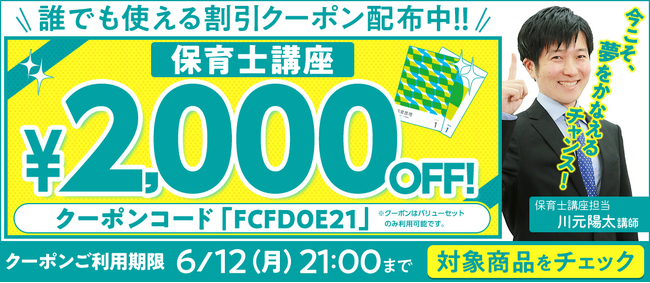 高い合格率を実現する株式会社フォーサイト(東京都文京区/代表取締役社長:山田 浩司)は、2023年6月5日(月)より保育士講座の誰でも使える割引クーポンを配布中です。