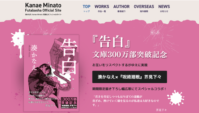 双葉社から刊行した湊かなえさんの小説・エッセイなど全ての著作物をご紹介している「湊かなえ Kanae Minato 双葉社オフィシャルサイト」では、作品紹介や試し読み、お知らせなどをお楽しみいただけます。