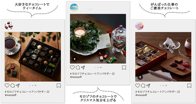 モロゾフのチョコレートを暮らしの中で楽しむ様子を、インスタグラムの写真や動画でご紹介頂きます。