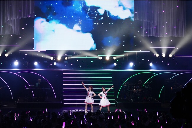 続いてはみんなの投票で選ばれた2人による一夜限りのスペシャルステージのコーナー。誰が歌うか期待感が高まっている中2部で登場したのは舞菜&珊瑚ペア。生バンドで披露されたのはBossa Novaアレンジの「恋はフュージョン」。疾走感あふれる原曲とは一味違うゆったりとしたミュージックで怒涛の流れに緩急をつけた。