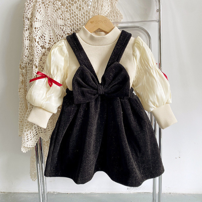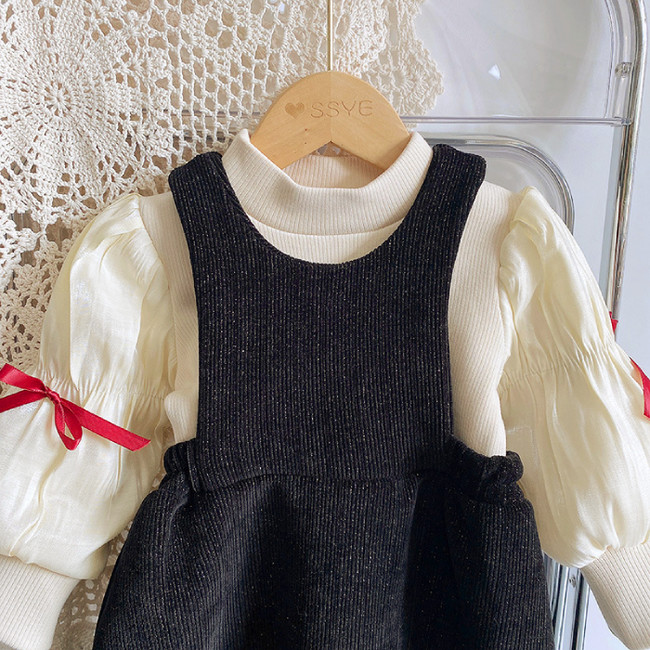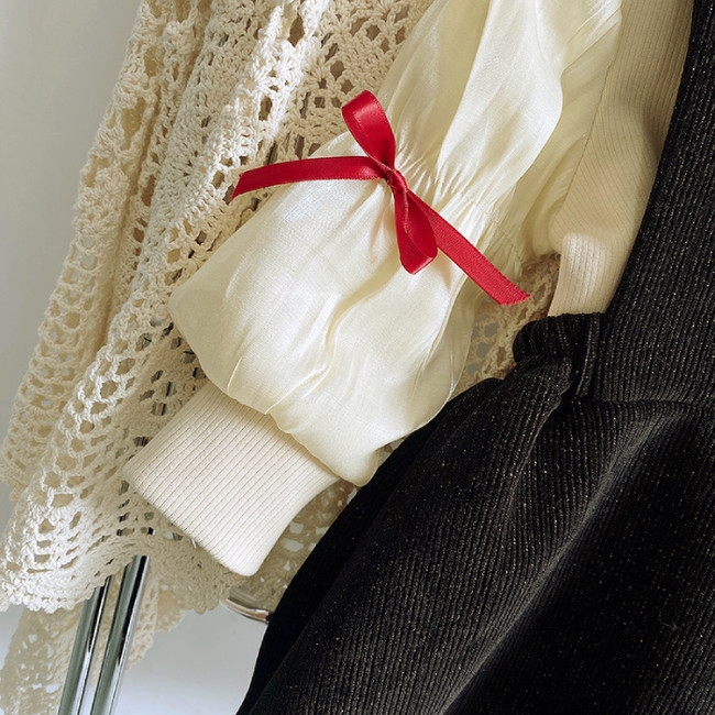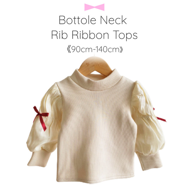 トップス カットソー リブ 異素材 アンシャンテプティセレクト商品 韓国子供服 韓国子ども服 韓国こども服 ボトルネック モックネック 女の子 リボン キッズ こども 幼児