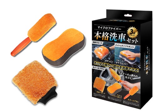 特徴:洗車をもっとラクに!マイクロファイバー本格洗車3点セット。ボディやフロントガラス、ホイールなど車の細かい部分までしっかり洗える便利アイテム。手にはめて使えるグローブや握りやすいブラシで作業もスムーズ。元気な「オレンジカラー」で見た目もわかりやすい!愛車のお手入れや休日の洗車タイムにおすすめ!
