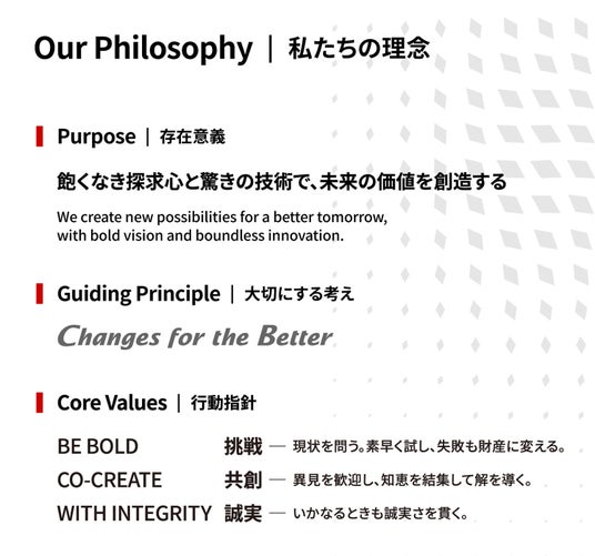 三菱電機グループは、「Our Philosophy」のもと、飽くなき探求心と驚きの技術で、未来の価値を創造してまいります。