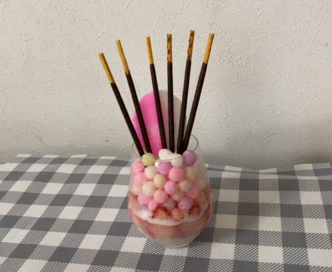 当社創業の地である佐賀の「ポッキー・オン・ザ・ロック」は江崎グリコの商品をふんだんに使ったレシピ。トッピングの「プッチンプリン」の可愛らしさを味わったら、「ポッキー」で混ぜながら味の変化をお楽しみください。