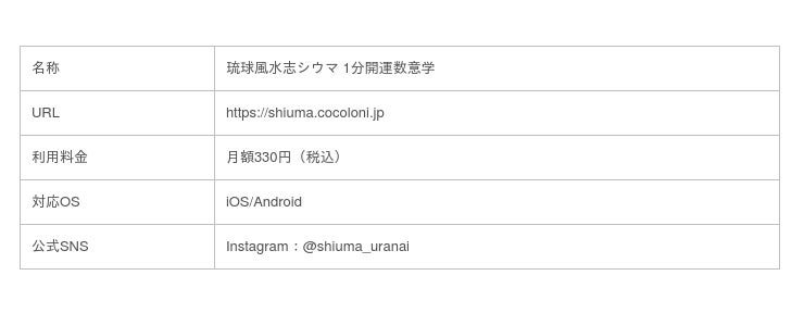 ※公式サイト『琉球風水志シウマ 1分開運数意学』会員へのご登録はサイト内からご登録ください。https://shiuma.cocoloni.jp