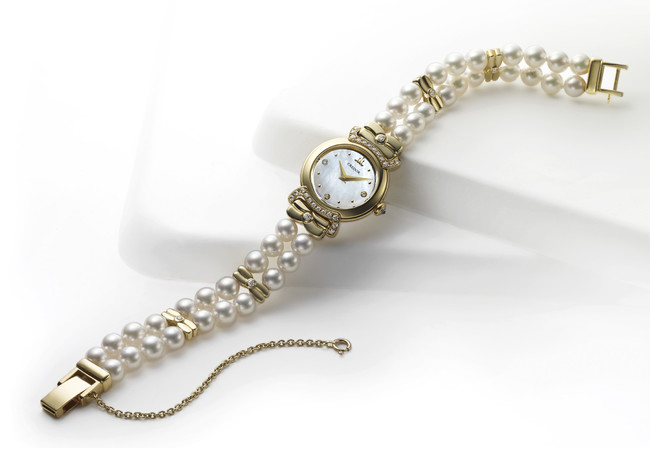 ダイヤルに使用している白蝶貝は、ブレスレットのパールと調和した美しい表情を湛えています。また、3時・6時・9時のインデックスとして、繊細な輝きのダイヤモンドを配置。ジュエリーの華やかさと時刻の視認性を両立したウオッチデザインに仕上げています。