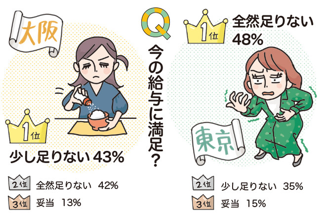 ・地域を問わず8割以上の女性が給与に「不満」。貯蓄額は大阪・東京で大きな差