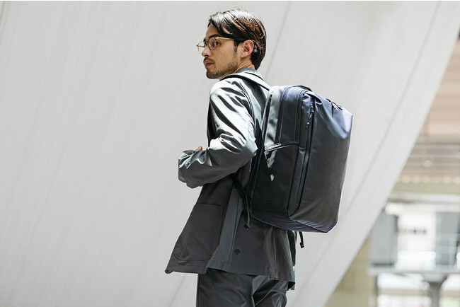 革らしい風合いも兼ね備えています。PC 収納やオーガナイザーポケットといった仕事に欠かせない機能を備え、幅広いシーンでマルチに使えます。