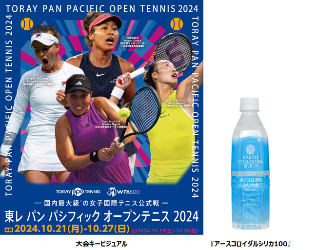 アース製薬株式会社(本社:東京都千代田区、社長:川端克宜、以下 「アース製薬」)は、10月19日(土)~10月27日(日)の日程で開催する「東レ パン パシフィック オープンテニストーナメント 2024」のオフィシャルスポンサーに就任し、『アースコロイダルシリカ100』が大会公式ウォーターに決定しました。