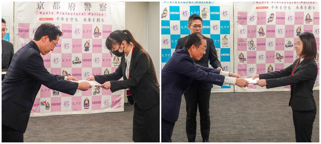 2024年2月7日に京都府警察本部にて感謝状贈呈式が行われ、犯罪被害者支援啓発動画と、犯罪被害者等支援連携訓練の様子が上映されたのち、学生たちに感謝状が贈呈されました。