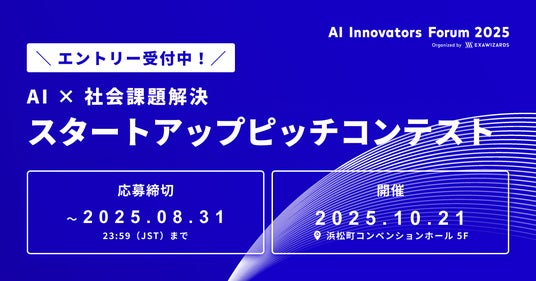株式会社エクサウィザーズ(東京都港区、代表取締役社長:春田 真、以下エクサウィザーズ)は、2025年10月21日(火)に、スタートアップピッチコンテストを開催しますのでお知らせいたします。本コンテストは、当社が主催する「AI Innovators Forum 2025」の中で開催する、AI 技術と社会課題解決を掛け合わせた革新的なスタートアップを発掘・支援するプログラムです。本選ピッチでは、Scrum Ventures創業者の宮田氏、セブン銀行 常務執行役員の中山氏、東京大学エッジキャピタルパートナーズ社長の郷治氏、当社代表の春田をはじめとする複数名が審査員として参加します。