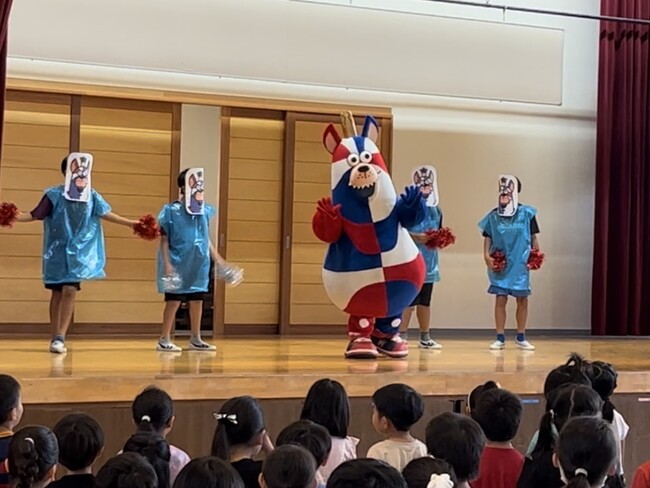 コロナ禍以降、初めての全校集会で子どもたちにとっては珍しいイベントだったと思うので、喜んでもらいたくアイディアを出し合ってゴーディーに審査員として参加をしてもらえないか相談をしました。