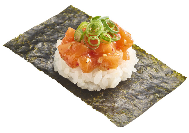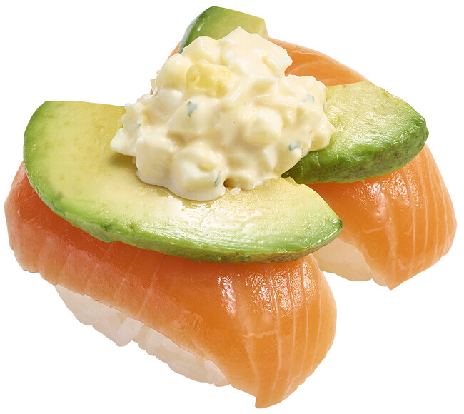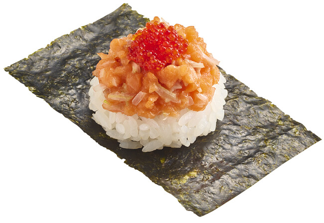 また、名峰大山から湧き出る栄養たっぷりの水で稚魚まで育った、ほどよい脂のりが特長の鳥取県境港産「国産生サーモン」も登場します。一度も冷凍されずに店舗に届くため、生ならではのもっちりとした食感を味わえるだけでなく、特製の醤油ダレの漬けやレモンペッパー、ユッケ、おろしいくら、ねぎとろ包みといろいろな楽しみ方をご堪能いただけます。さらに、フレッシュアボカドや自家製タルタル、生ハムなどと合わせた変わり種や、販売するたびに大人気の期間限定シリーズ「マーラー風味」のサーモンバージョン、おはぎ仕立ての進化系創作すしの「サーモンのおはぎ」など、サーモン商品を多数取り揃えております。