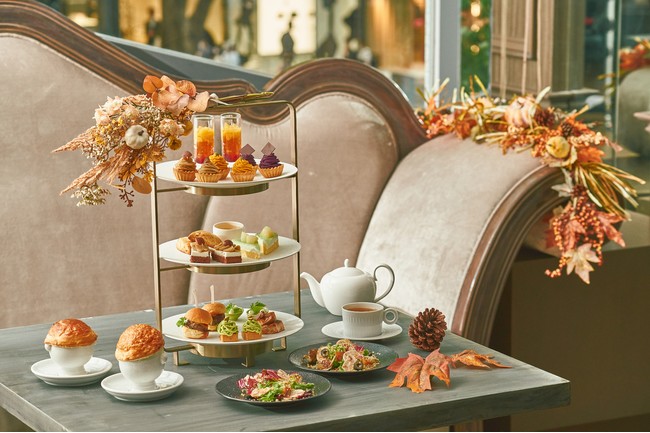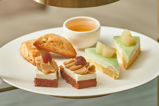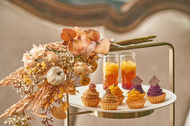 和栗、紫芋、カボチャの3種類のモンブランをメインに、洋梨、シャインマスカットなど秋の味覚をふんだんに使用したアフタヌーンティーをご用意しました。