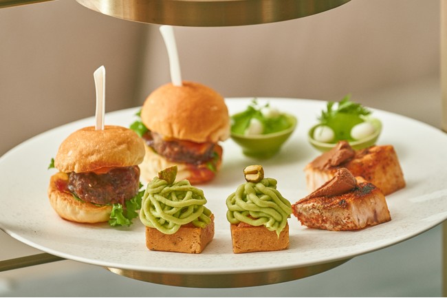 フランス産シャテーヌ栗とマッシュルームを合わせたサラダと、ボストンスタイルのシーフードチャウダーのパイ包み焼きからアフタヌーンティーがスタート。ミニサイズながら本格的な味わいのTAVERN特製バーガーやメカジキのグリルなどが並ぶ、グリルレストランならではの食事が充実したアフタヌーンティーは、甘味と塩味をバランスよく堪能されたい方におすすめです。アボカドタルトをモンブランスタイルにアレンジしたアボカドのモンブランもあわせてお楽しみください。