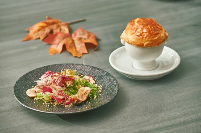 フランス産シャテーヌ栗とマッシュルームのサラダ しょうゆ糀のドレッシング アーモンドのアクセント