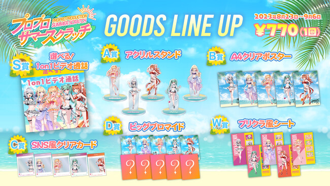 「クリエイティビティ×テクノロジー」の力でIP開発を行う株式会社CHET Group(本社:東京都品川区 代表取締役CEO:小池祐輔 以下、CHET)が運用するオンラインくじサービス「CHETスクラッチ」にて、人気VTuber事務所「プロプロ」のオンラインくじ「プロプロサマースクラッチ」を8月23日(水)より発売いたします。
