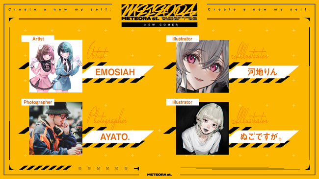 ミュージック&アート領域において卓越したインフルエンス能力を持つクリエイターレーベル「METEORA st.」は、「AYATO.」、「EMOSHIA」、「ぬごですが。」、「河地りん」が新メンバーとして加入することを発表する。