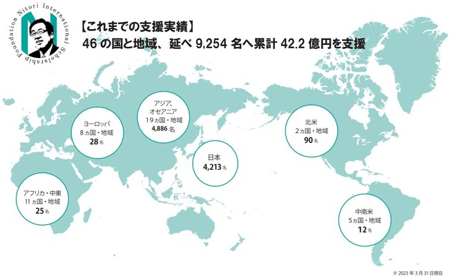 似鳥国際奨学財団は、「ニトリグループが描くロマンの実現に、大きな力を貸して下さったアジア諸国の方々へ恩返しをしたい」という思いから、(株)ニトリホールディングス創業者である似鳥昭雄が私財を寄附し、2005年3月に設立。設立から給付型奨学金(返済義務のない奨学金)の支援を、さまざまな形で広げてきました。2014年度には、国際友好親善と人材育成に寄与することを目的として、海外現地大学生への支援を開始し、2021年より、タイの大学への支援も開始しています。2023年3月末までに46の国と地域の9,254名に累計42.2億円の支援をいたしました。