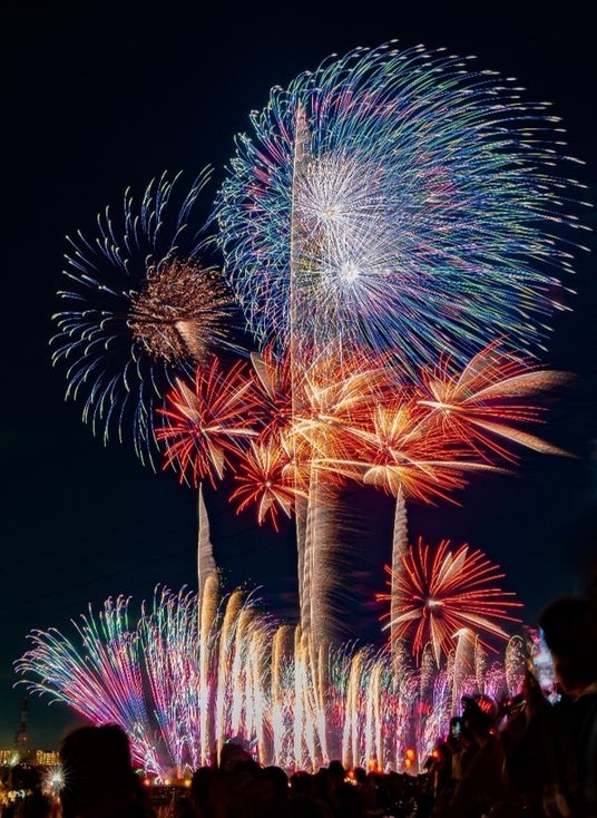今大会は「荒川放水路通水100周年記念大会」として、記念プログラムの打上げを行うとともに、打上発数を前回から1,000発増の約7,500発を打ち上げ、対岸で同時開催の「いたばし花火大会」と合わせて大会史上最多の約15,000発を打ち上げます。