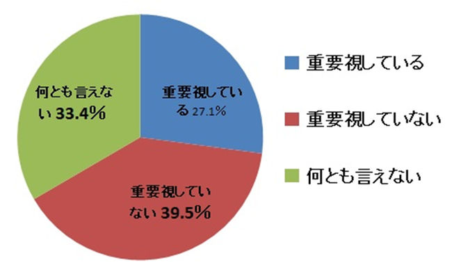「重要視している」(27.1%)人に比べて、「重要視していない」人がかなり上回って、39.5%と約4割を占めています。