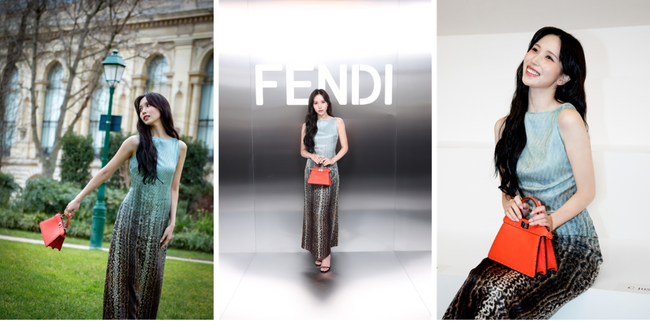 今回、フェンディ 2024年春夏 クチュールコレクションに参加するためにパリを訪れたミナ。フェンディ 2024年春夏 ウィメンズコレクションより、ブラウンのアニマル柄とライトブルーのマイクロ「FF」ロゴのグラデーションプリントが特徴のシルクサテンドレスを身に纏い、「セレリア(Selleria)」コレクションの最高級カーフレザー「クオイオ ローマ(Cuoio Roma)」を用いたメゾンのアイコンバッグ「ピーカブー アイシーユー プチ(Peekaboo ISeeU Petite)」と共に、芸術的で華やかな街・パリでの1日を楽しみました。さらに最新クチュールコレクションをフロントローで鑑賞したのち、バックステージではアーティスティック ディレクター キム・ジョーンズ(Kim Jones)や、アクセサリー アーティスティック ディレクター シルヴィア・フェンディ(Silvia Venturini Fendi)、そしてジュエリー アーティスティック ディレクター デルフィナ・デレトレズ・フェンディ(Delfina Delettrez Fendi)との対面を果たしました。