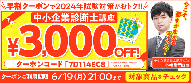 高い合格率を実現する株式会社フォーサイト(東京都文京区/代表取締役社長:山田 浩司)は、2023年6月13日(火)より中小企業診断士講座の早割クーポンを配布中です。
