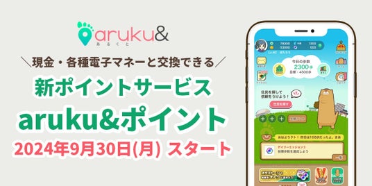 TOPPANグループの株式会社ONE COMPATH(ワン・コンパス)が運営するウォーキングアプリ「aruku&(あるくと)」は、歩くだけで現金や電子マネーに交換できる新ポイントサービス「aruku&ポイント」を2024年9月30日(月)より順次スタートします。(当初9月26日提供開始予定でしたが、諸般の事情により9月30日に変更となりました。)