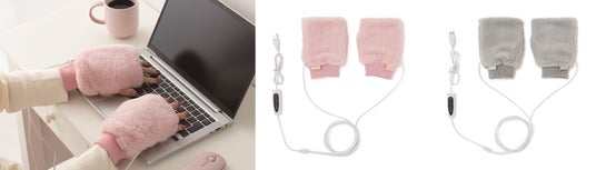 手元を温められるヒーター付きの手袋です。指先が出るデザインなのでPC作業や手先を使う細かい作業時にもお使いいただけます。温度は3段階調節が可能です。パソコンやモバイルバッテリーから給電し、デスクや野外でもお使いいただけます。