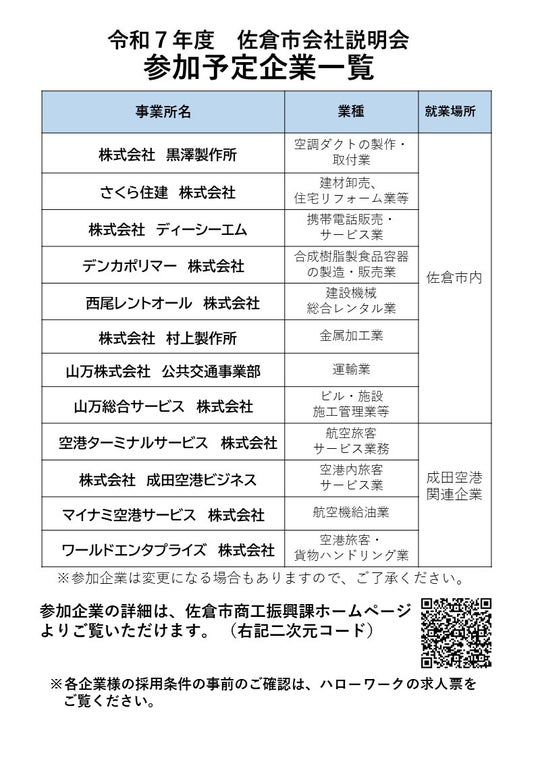 令和7年度佐倉市会社説明会
