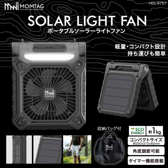 株式会社ヒロ・コーポレーション(福岡県北九州市)から、【MOMTAG】ポータブルソーラーライトファン HDL-9757が5月中旬に発売される。